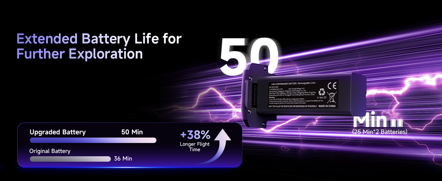 Includes Two Batteries for Up to 50 Minutes of Total Flight Time